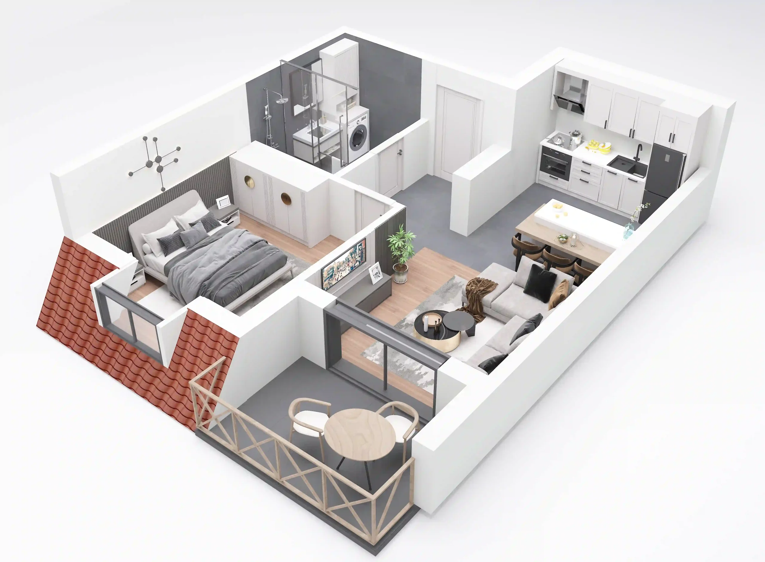 Living room/dining room/kitchen: 21.88m2